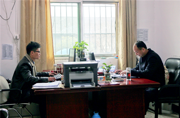 分管常委在与办公室人员讨论县纪委全会的各项筹备工作事宜