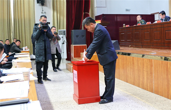 参会人员对述责述廉领导干部进行民主评议,并将评议表投入票箱。