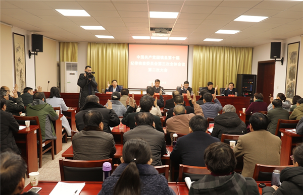 2月24日上午8:30,中共固镇县第十届纪律检查委员会第三次全体会议召开,县委书记周学保出席会议并讲话,县委常委、县纪委书记、县监委主任陶振银主持会议并代表县纪委常委会作工作报告。