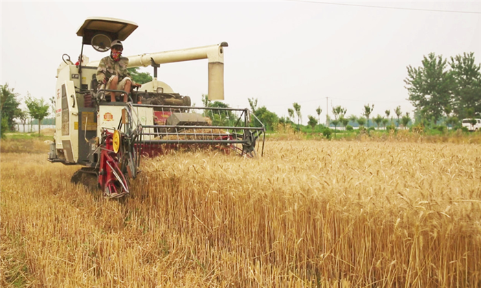 轰隆隆的收割机慢慢向前行驶,一粒粒麦子被联合收割机“尽收囊中”。
