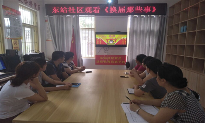 长淮卫镇东站社区党支部组织党员观看换届警示教育片