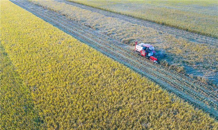 万里画卷绘彩图,无边无际的稻田荡起丰收的波涛