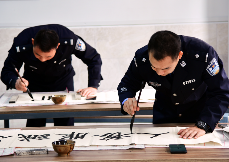 2017年5月19日,习近平总书记亲切会见全国公安系统英雄模范立功集体表彰大会代表并发表重要讲话,向全国公安机关和公安队伍提出“对党忠诚、服务人民、执法公正、纪律严明”的总要求。近年来,固镇县公安局始终坚持把总书记“总要求”融入日常执法、管理、服务和从严治警的全过程,并通过多种形式的教育活动引导广大干警不忘初心、牢记使命,主动担当、忠实履责。近日,该局组织干警队伍中的书法爱好者开展“不忘初心,书写忠诚”活动,通过书写总书记总要求,加深理解和感悟,从而转化为不断提升人民群众的安全感和满意度的精神动力,努力做党和人民的忠诚卫士。