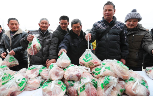企业年末分发福利,助农民工兄弟回家过年