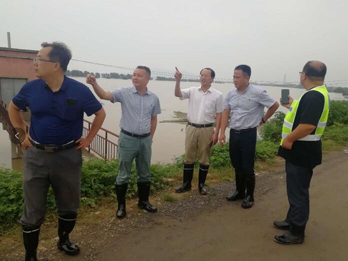 市纪委副书记、监委副主任尚殿松率第二督查组在五河县大新镇毛滩村防汛点督查,向镇村干部了解防汛准备情况