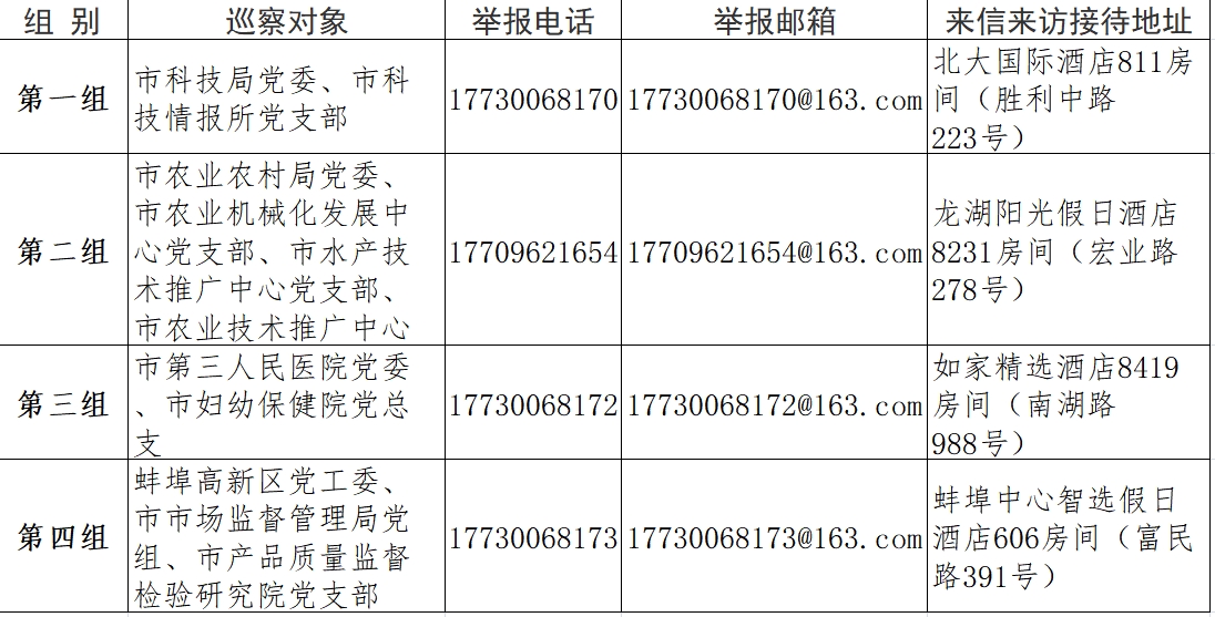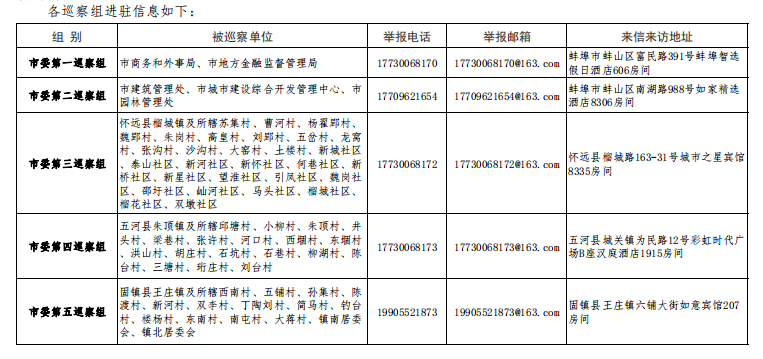 根据市委部署和市委巡察工作领导小组安排,市委组建5个巡察组,于11月8日至12月20日对市本级及五河县、固镇县粮食系统开展专项巡察,对市发展和改革委员会党组、市供销社党委、市统计局党组、团市委、市科协党组…