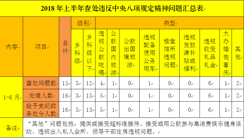 2018年上半年,五河县共查处违反中央八项规定精神问题15起,处理16人,给予党纪政务处分16人,整体情况较去年同期虽有小幅下降,但落实中央八项规定精神成果仍需进一步巩固拓展。县纪委监委已对上述1…