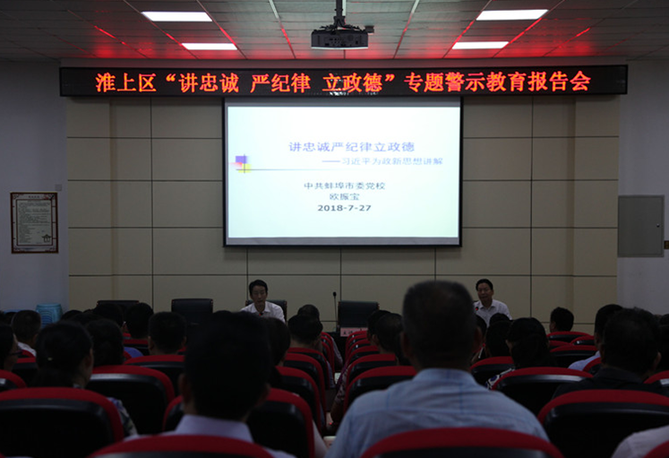 7月27日,淮上区举办“讲忠诚、严纪律、立政德”专题警示教育报告会,全区副科级以上党员领导干部参会。 会上,市委党校欧振宝教授以《讲忠诚、严纪律、立政德——习近平为政新思想讲解》为…